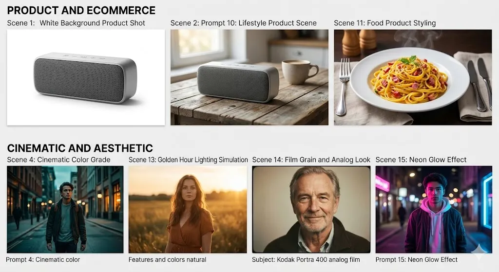 3. Change the style reference. Swap aesthetic references (film stock names, art styles, lighting techniques) to redirect the creative output while keeping the prompt structure.