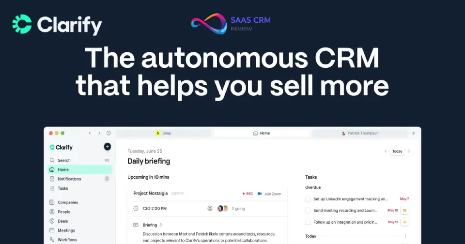 ClarifyAI CRMAuto-populates contacts from email/calendarUnlimited seats, AI creditsAdvanced AI features