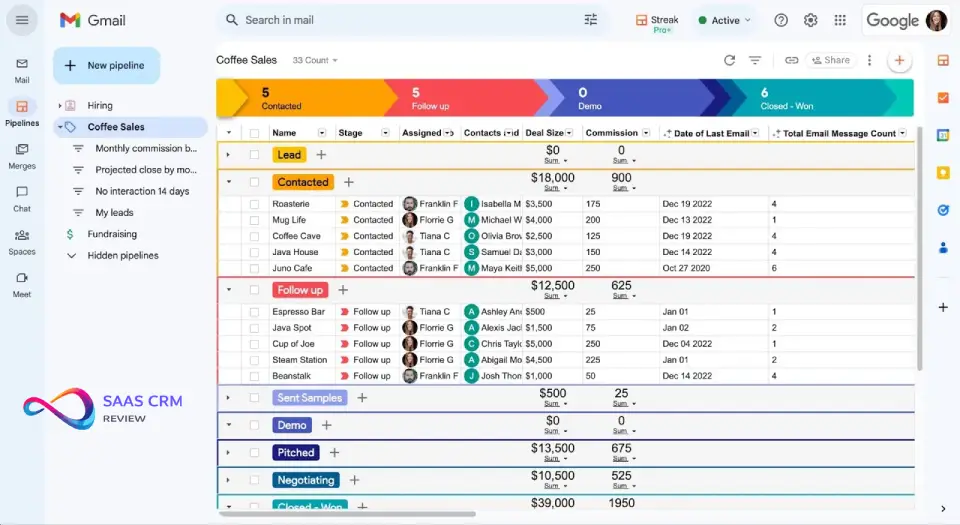 These tools keep CRM inside your inbox, so adoption is fast and friction is low. The tradeoff is limits and narrower CRM depth compared to full platforms. Use them if you live in email and your pipelines are simple.
