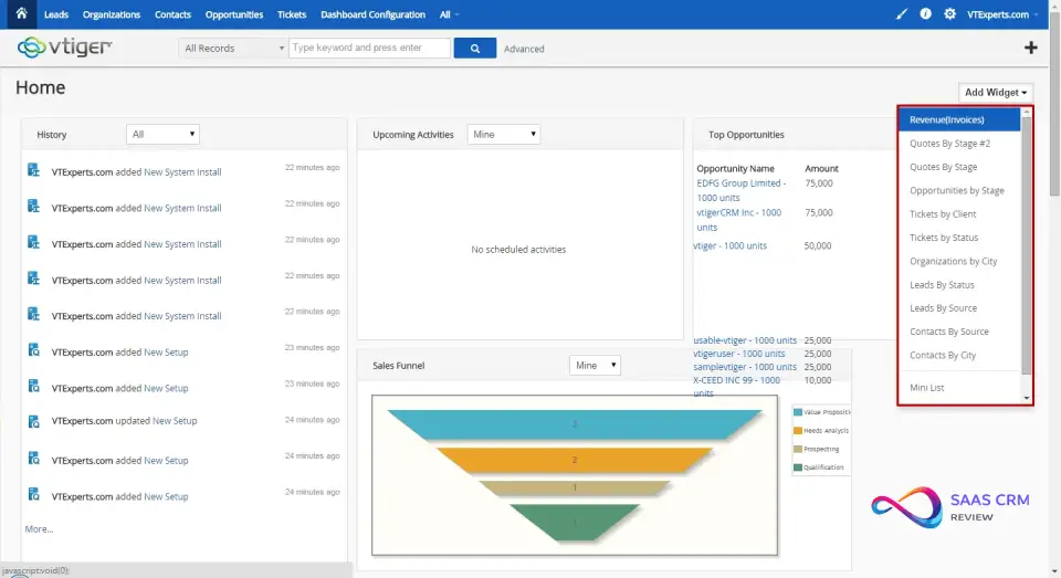 VtigerServices/ProjectsUnified sales + support view10 users, 3,000 contactsAdvanced analytics