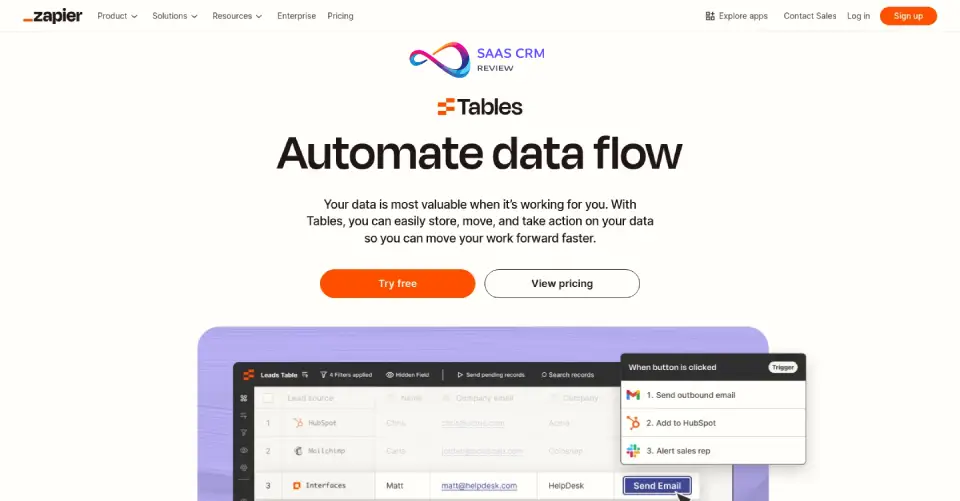 Zapier TablesCustom CRM6,000+ app integrations5,000 records, 100 automations/moRecord volume