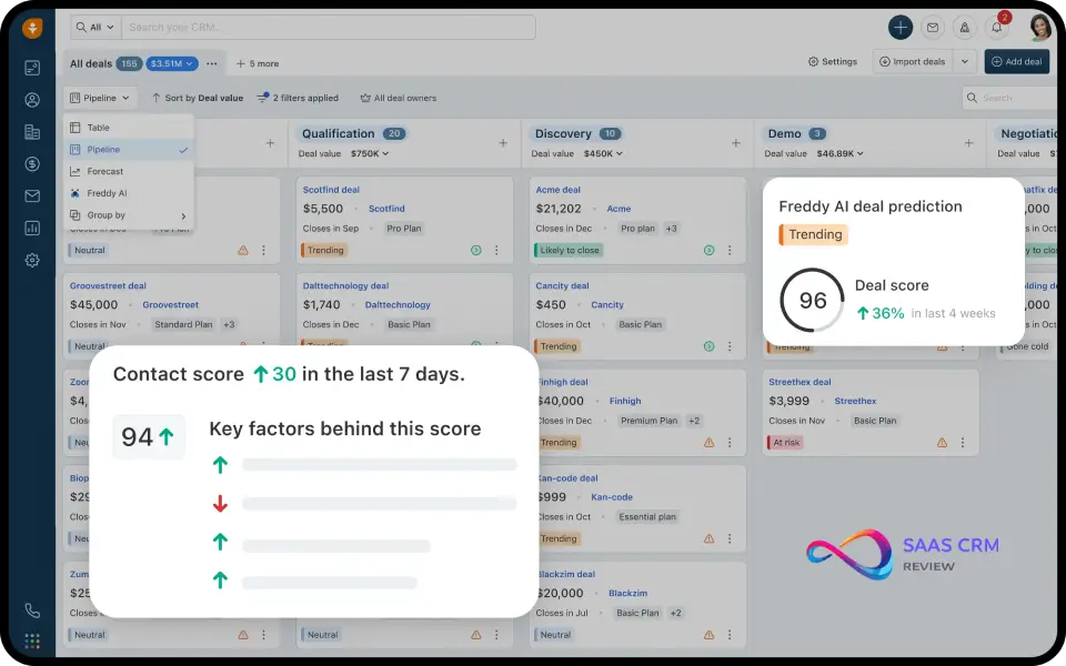 Sales pipeline trackingHubSpot, Zoho, Freshsales
