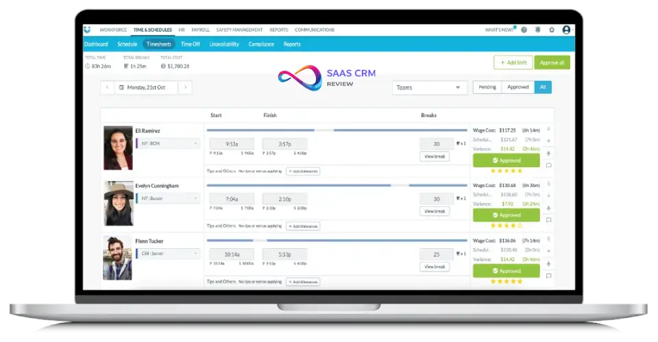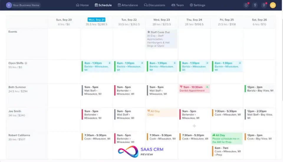 Best for single-location hourly teams that want employee scheduling software plus basic time tracking in one place. Not ideal if you’re multi-location now or need advanced labor forecasting, compliance controls, or payroll/POS integrations on the free tier.