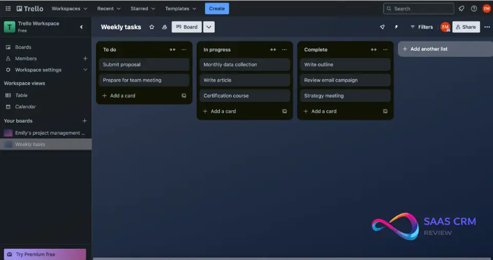 - Free options: ClickUp, Trello, Notion, Asana (2 users)