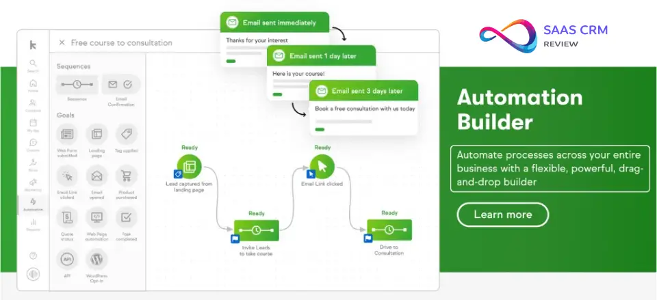 | Keap (Infusionsoft) | SMB marketing automation | API/third-party | FB (via Zapier) | Limited | Basic | No | Basic | Not service-focused | $249/mo (2 users) |
