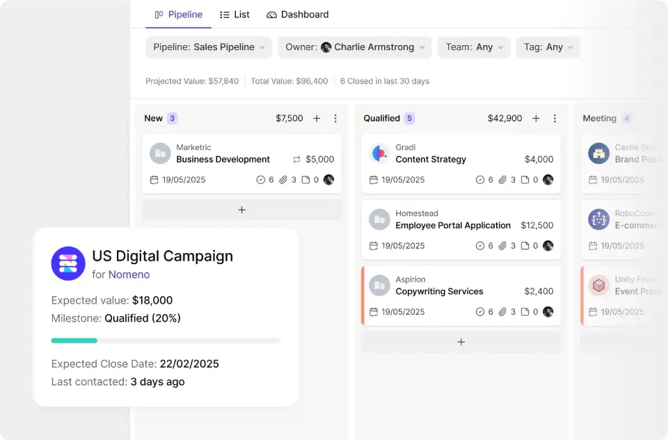 Many teams lose deals simply because they lack visibility. Capsule’s pipeline lets you see where opportunities are stuck and which require attention.