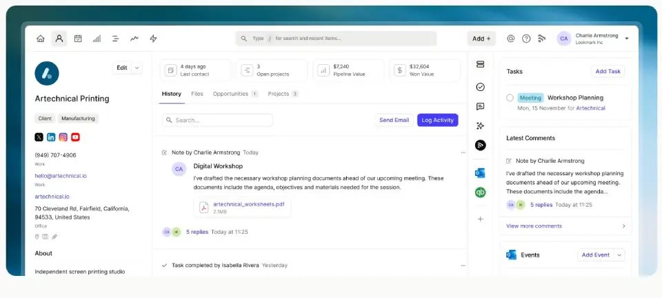No one likes switching between apps. When emails are automatically linked to CRM records, your team spends less time on admin and more time on selling.