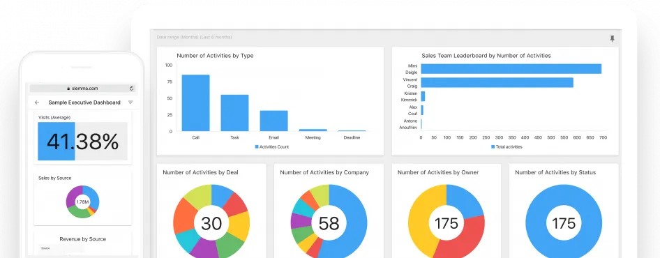 Dashboard customization lets you create role-specific views. SDRs see activity metrics and lead conversion, while managers see team quotas and forecast accuracy.