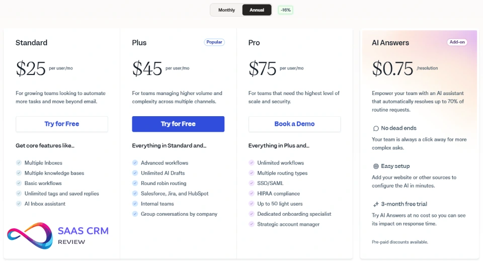 Best for: Small to mid-sized SaaS companies, eCommerce businesses, and support teams (5-50 agents) who handle primarily email support and want a clean, intuitive interface without enterprise complexity.