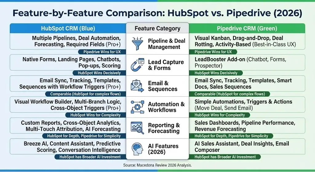 CategoryHubSpotPipedriveWho WinsNotes (2026 Context)