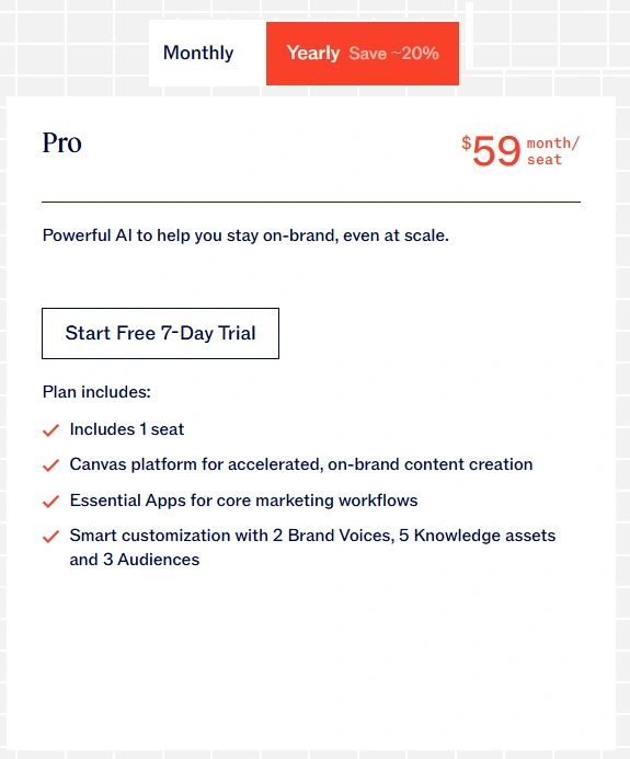 - Solo marketers: Pro annual ($59/mo, $708/year)
