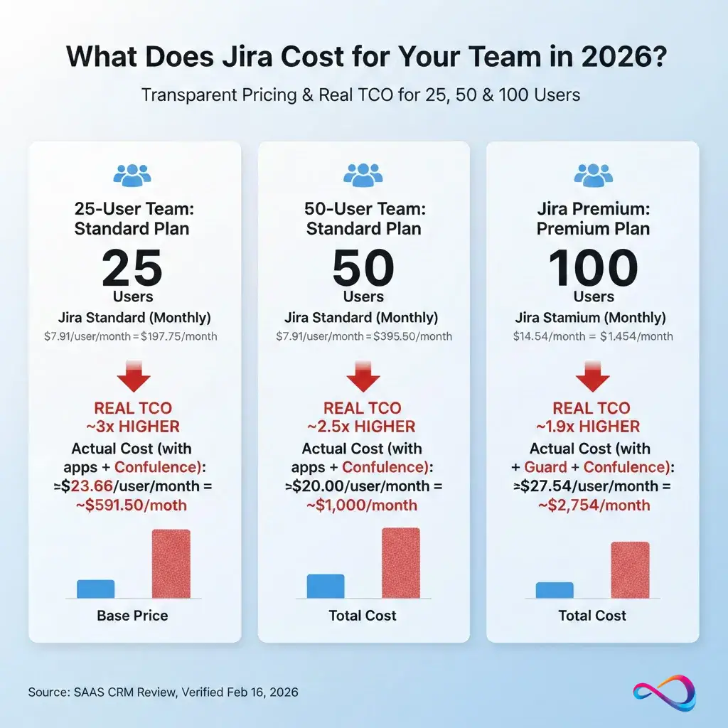 Real TCO warning: Add +$150–$300/month for Marketplace apps + Confluence for 25-person team.