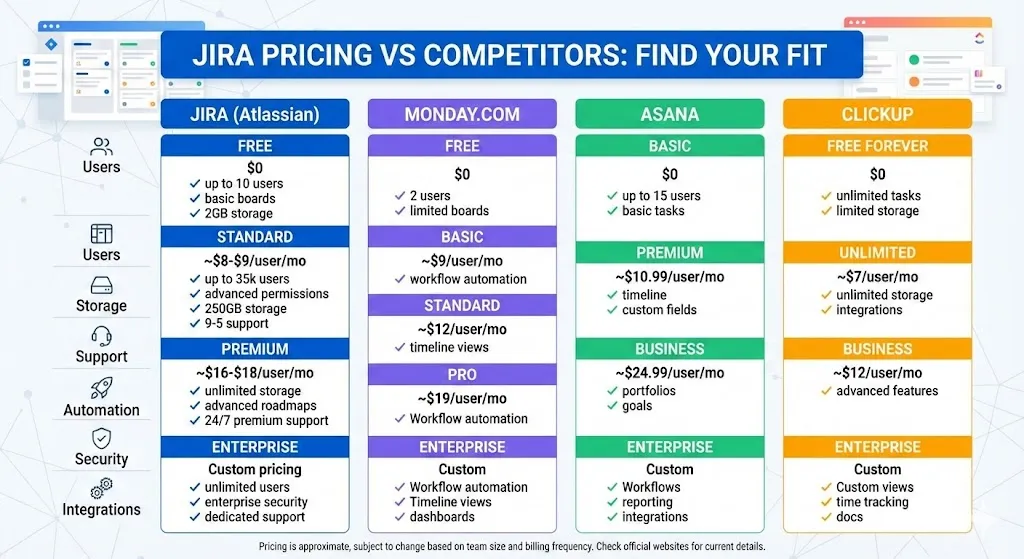 Who this guide is for: Teams of 10–500+ users evaluating Jira cost, procurement teams building 2026 budgets, and anyone deciding between Jira Standard vs Premium or comparing against alternatives like Asana, ClickUp, monday.com, Linear, and Wrike.