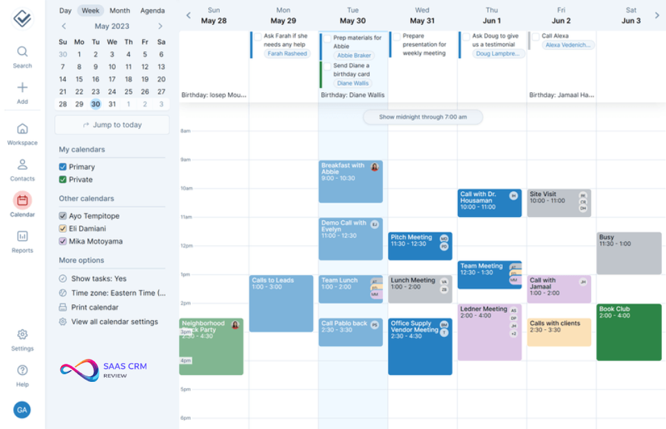 The integrated calendar eliminates context-switching between your CRM and scheduling tools.
