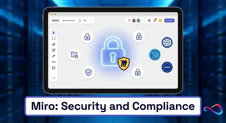 Miro security: Miro claims SOC 2 Type II and ISO 27001 certifications. SSO and SCIM are available on higher tiers. For HIPAA/BAA, verify directly with Miro Trust Center—do not assume availability.