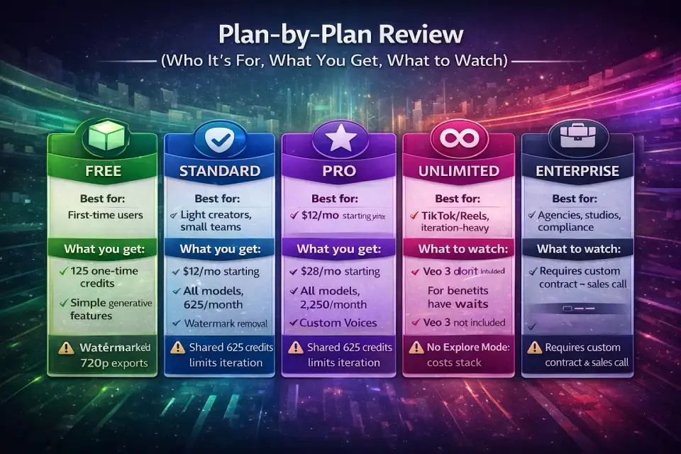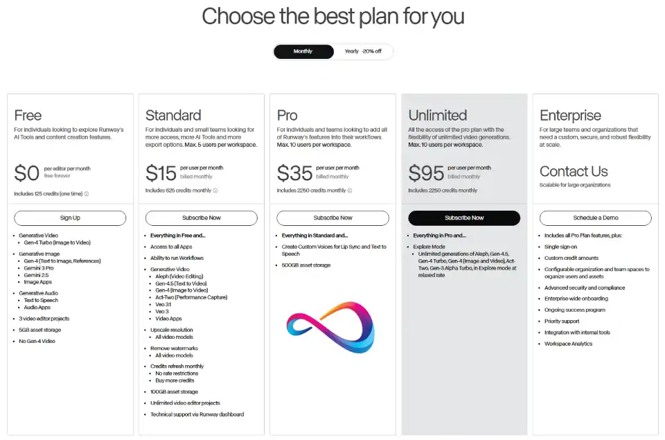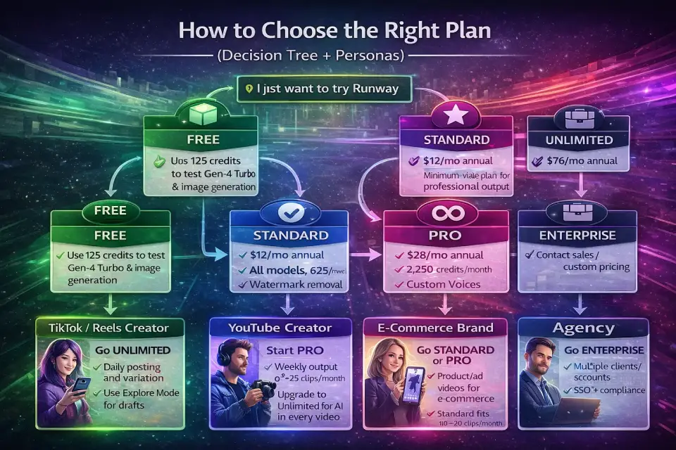 Runway ML Plans and Pricing Compared (Free vs Standard vs Pro vs Unlimited vs Enterprise)
