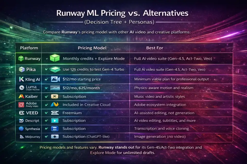 Runway ML Pricing vs. Alternatives (2026)