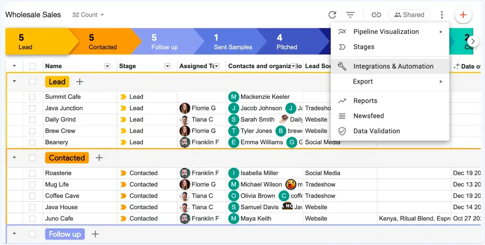 - Need shared visibility across deals and contacts