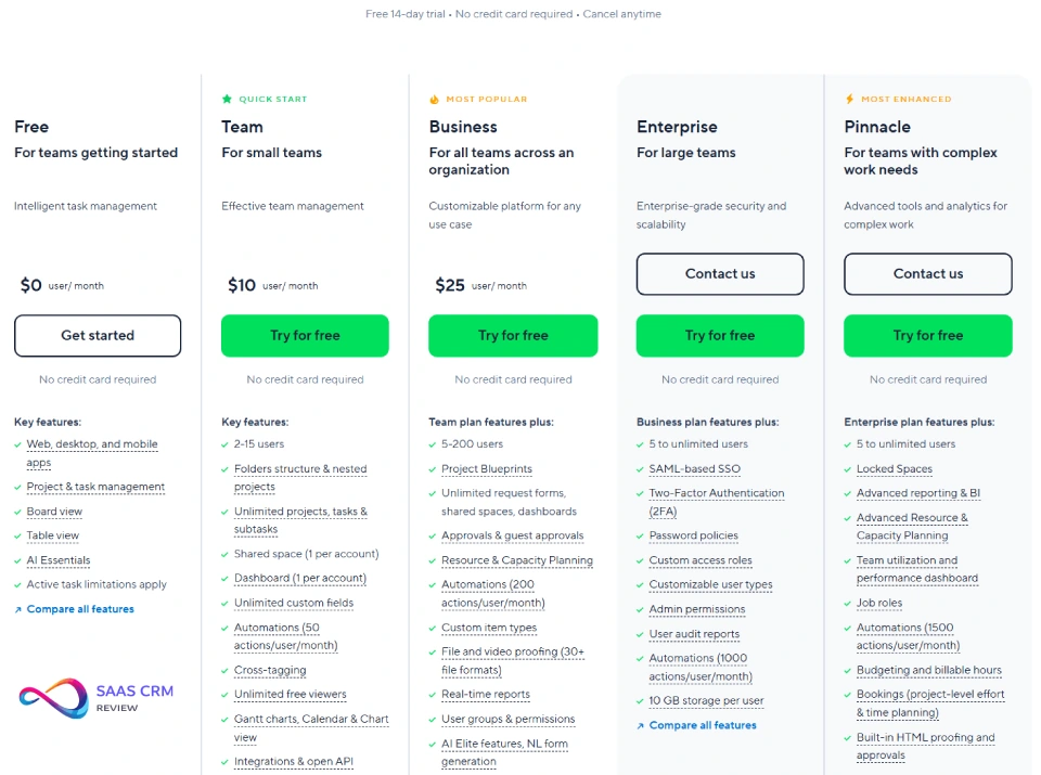 • YES → Try ClickUp ($7/user/month; highly customizable) or monday.com ($9/user/month; easier than Wrike). Wrike’s cost climbs fast at scale.