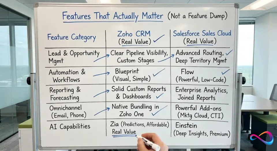 Why this article exists: We created this Zoho CRM vs Salesforce comparison to help you choose a CRM based on budget, complexity, and admin capacity — not vendor marketing. Below, you’ll find scenario-based cost models, a weighted scorecard, and an implementation blueprint you won’t find in most comparisons.